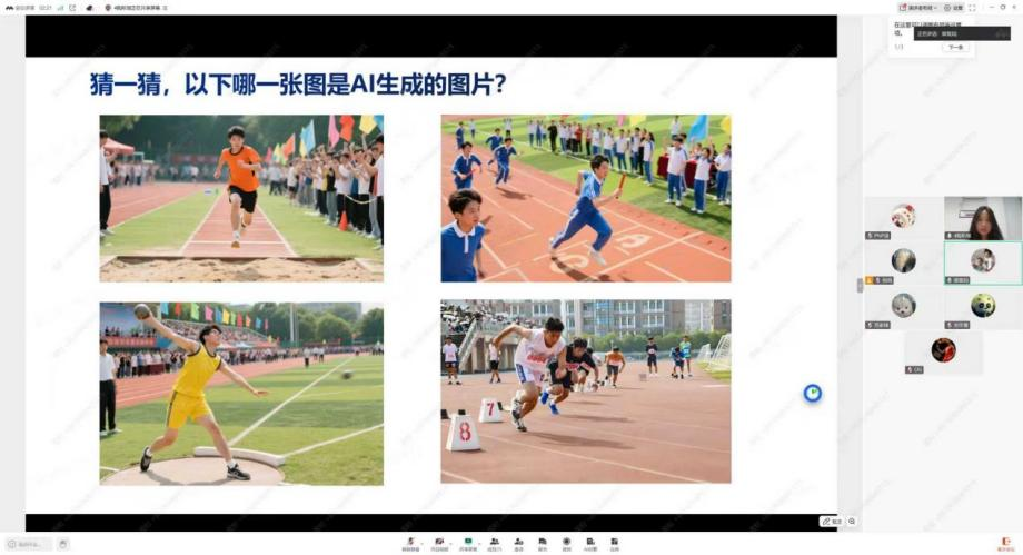 支教团队员在云端课堂中引导学生辨识AI生成图像