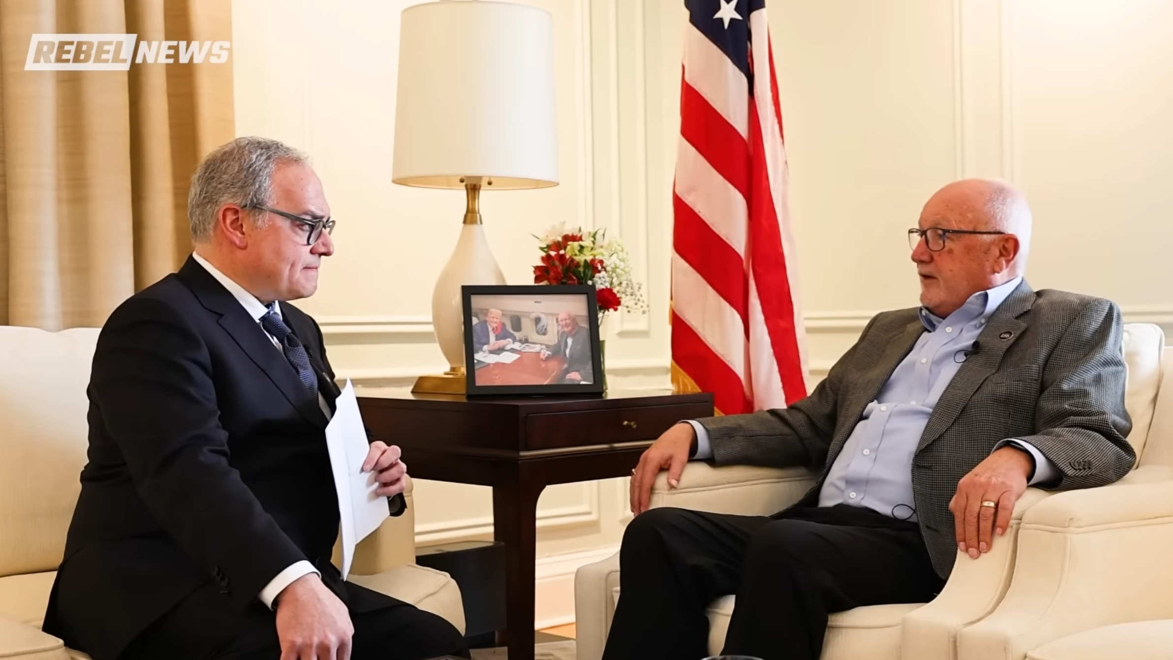 美国驻加拿大大使皮特·胡克斯特拉(右) 视频截图